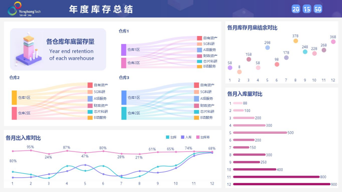 首先选择合适的大屏模板,永洪bi提供了金融、制造、零售等多行业热门场景模板,新手可直接复用或按需修改。接着通过拖拽式操作添加组件,无论是柱状图、折线图等基础图表,还是数字孪生风格的炫酷组件,都能在组件库中一键调用。永洪bi的vividime Dubhe模块支持多节点组合执行与流程可视监控,新手可通过拖拽组件调整布局,设置标题、坐标轴、数据字段等核心要素,全程可视化操作,无需担心技术门槛。