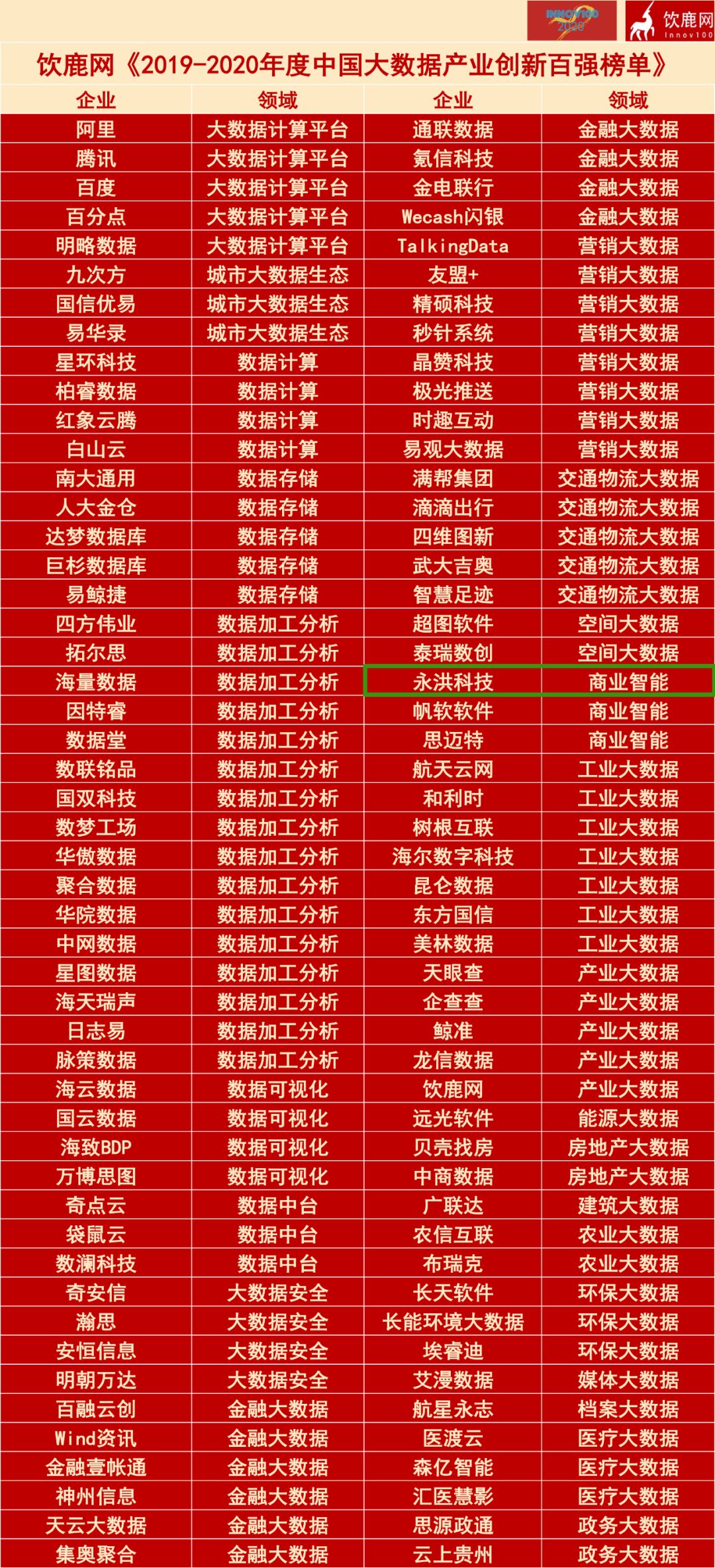 大数据产业创新百强榜单基于饮鹿网的一手数据和赛智产业研究院前沿产业研究报告,结合业内产业专家的调研访谈,按照“创新性、高成长性、产业影响力、高盈利能力”等维度建立产业创新百强评价指标体系,“背靠背”进行的评价和评选,以全面、科学、可信地反映所评价创新项目的未来发展前景、创新能力和投资价值等。