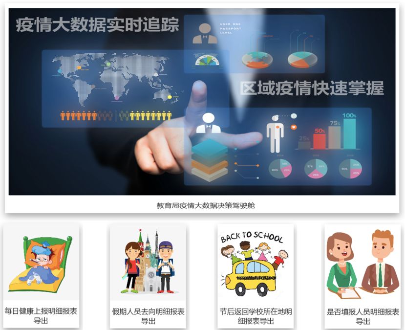 针对学校的每日数据填报工作,我们的大数据分析平台,正在为某公安院校在疫情防控方面发挥着积极作用。