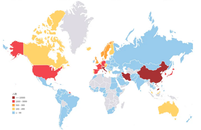 通过疫情的全球分布图可以看出,目前新冠病毒已经在全球开始传播,超过一百多个国家报告检测出确诊病例,世卫组织也宣布病毒的传播符合大流行的定义,证明阻止新冠病毒的传播已经需要全世界共同的努力。