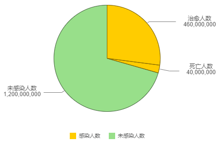 我们选择使用饼图来展示1918年感染西班牙流感和死于这种疾病的人数与当时世界总人口之间的比例关系,