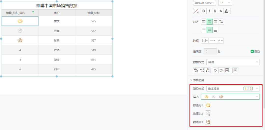 排名渲染可以对数据为1,2,3的数据设置图标显示,增强展示效果。