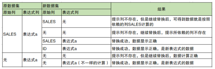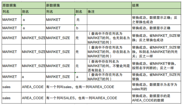 替换新数据集后,有两种结果:直接替换成功和弹出提示信息。原始列和新列的数据类型不匹配,弹提示信息不等于替换失败。