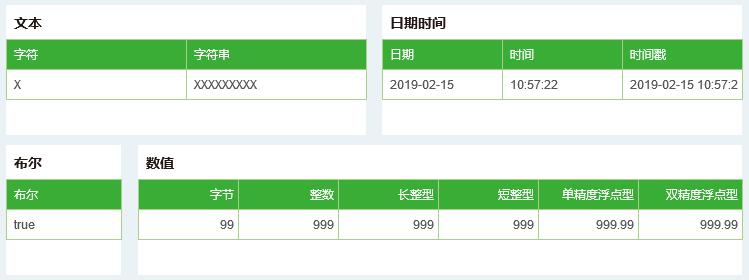 数值类型(字节,整数,短整数、长整数、单精度浮点型、双精度浮点型)的元数据显示:99/999/999.99