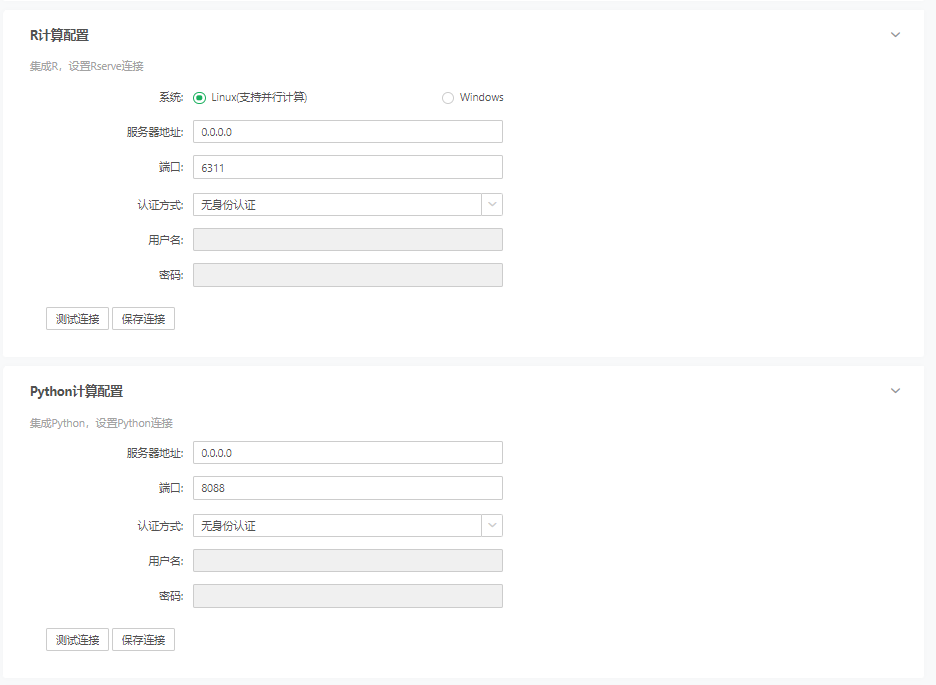 R计算配置是为深度分析设置 Rserve 连接和登录验证。