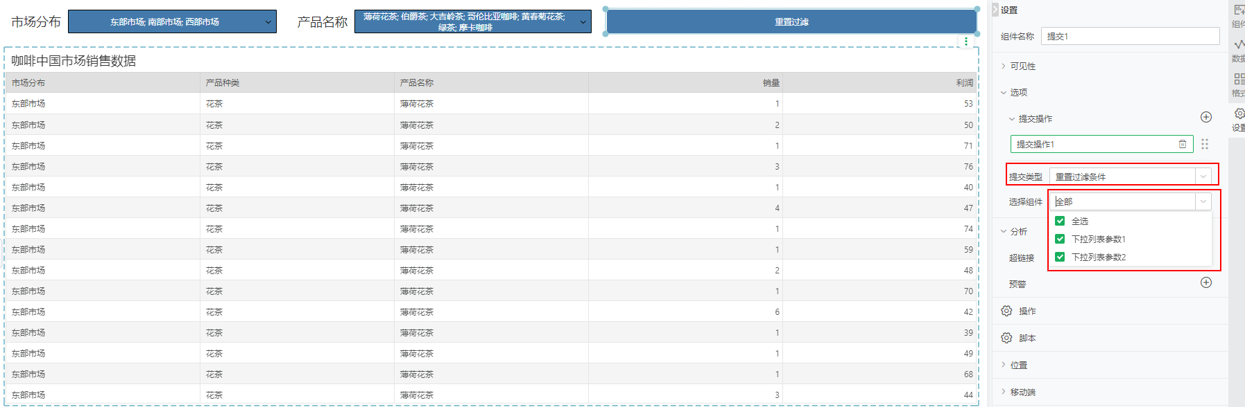 过滤组件、参数组件支持添加联动,快速筛选数据 |