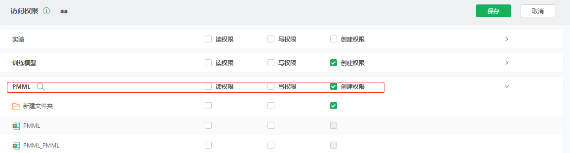 读权限用户只可以看到保存的PMML文件并能使用,但是不能修改、重命名、删除和移动。写权限用户都可以操作。