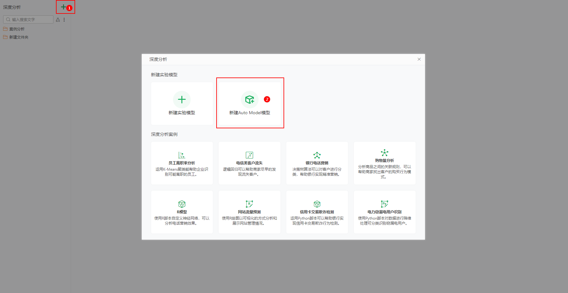 首先,在左侧导航栏选择深度分析,进入深度分析模块。根据页面提示信息点击左侧顶部的