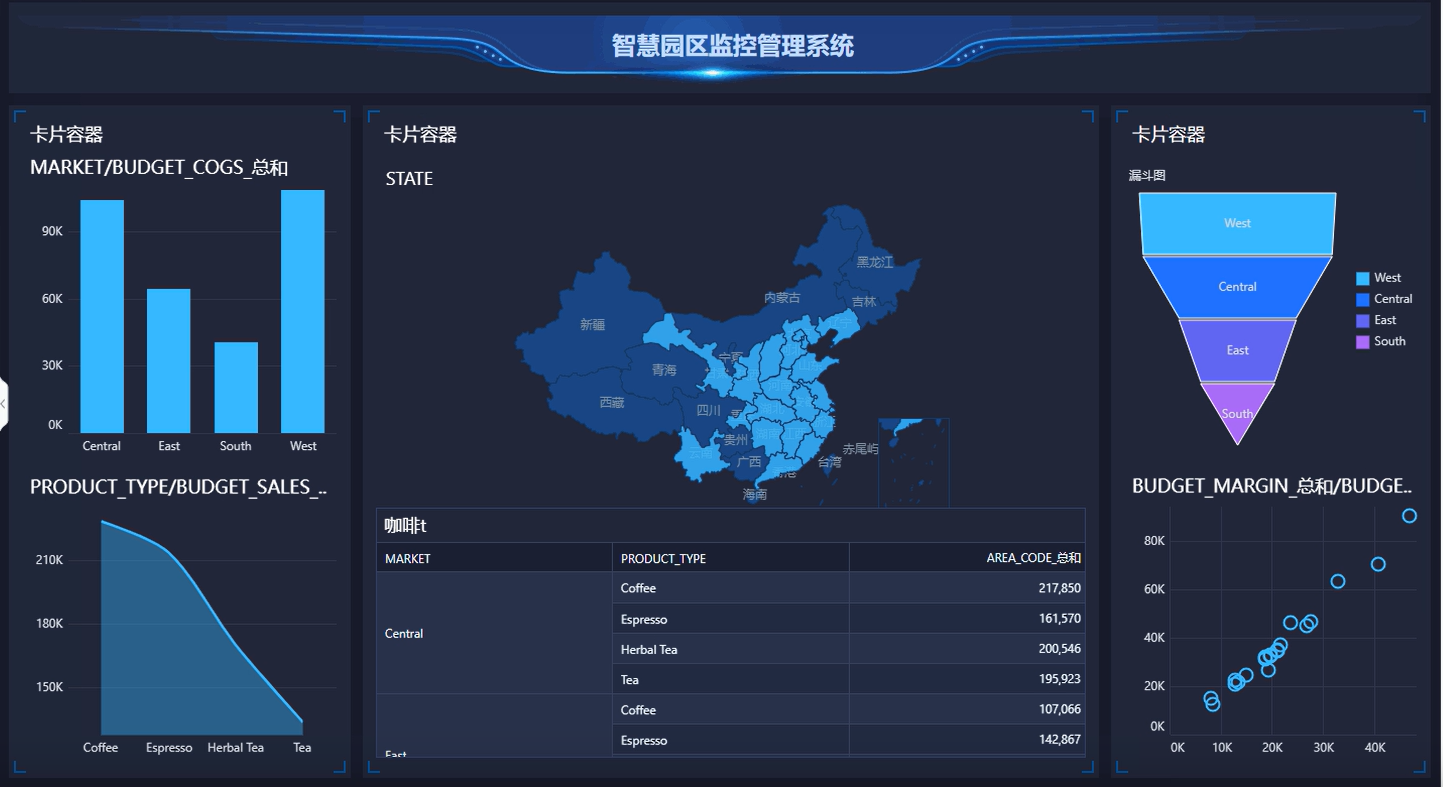 卡片容器内支持拖入其他组件,但不包括卡片容器、空白组件。目前卡片容器内子组件支持以自由布局形式排布,其内部交互逻辑与报告的自由布局一致。