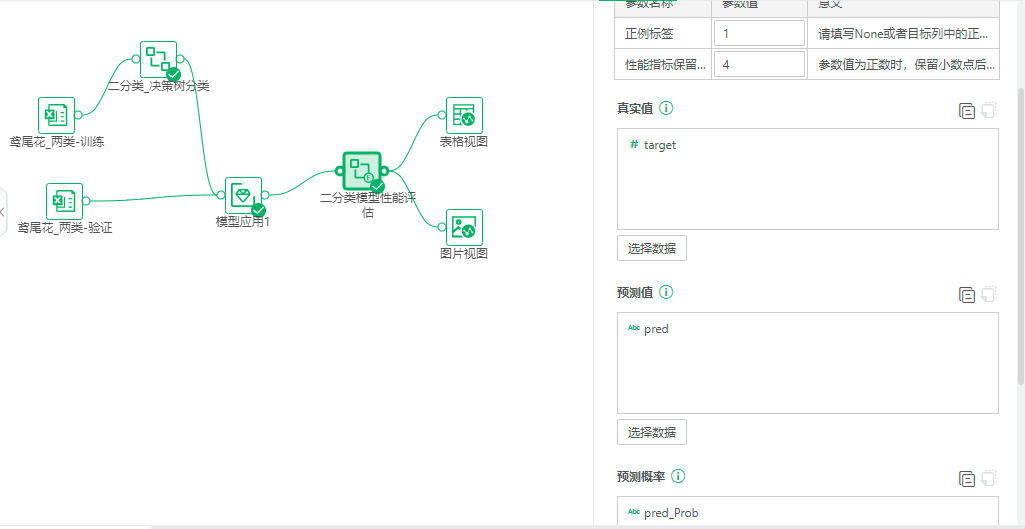 预测概率:请选择正例(类别编号为1)的预测概率字段,数据要求:预测概率仅能选择一列。
