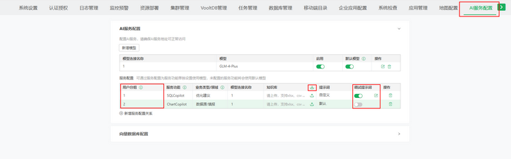 •AI服务配置支持用户分组:通过用户分组,企业可以根据不同用户的需求划分不同的用户组,从而为每个组定制专属的AI服务策略。