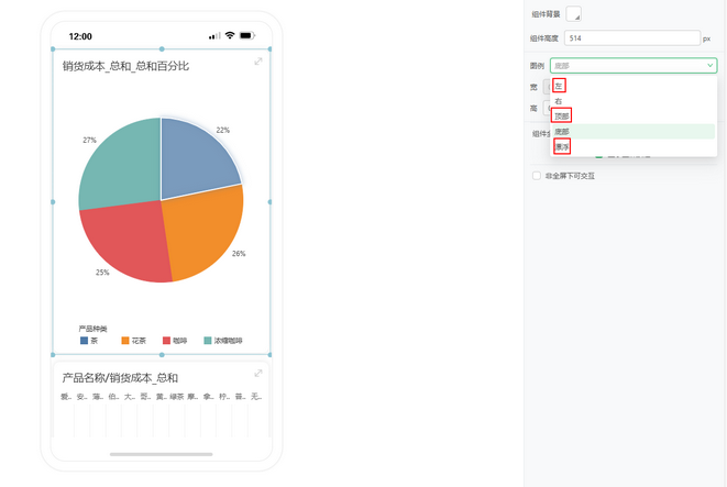 •图表组件的图例位置,新增左、顶部、悬浮。图例支持选中,拖拽调整大小。