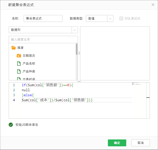 1.在制作报告,左侧的数据列表上,新建聚合表达式。