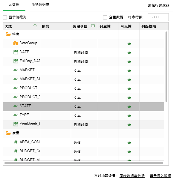 可见性 可见,用于设置数据集中列的可见性。请参考 控制列权限 章节中的介绍。