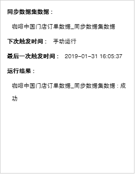 通过调度任务模块制定一个任务,在自定义的时间去执行数据集并把结果存储到部署的硬盘中,基于该数据集定制的报表会优先采用同步数据集数据的结果来展现数据。如果数据库中的实际数据会变化,可以制定一个循环执行的任务来定时更新同步数据集数据的结果。