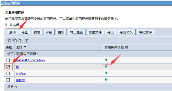 4.2 勾选“bi”后,点击“启动”,若启动成功,右侧状态由红叉变为绿箭头。