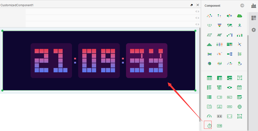 The clock component can show the current time and is integrated into the Yonghong product as a stand-alone application. Users can add the clock component from the right pane to the report when making the report.