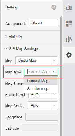 The system provides two map types, satellite maps and general maps. The theme of the general map is divided into light theme and dark theme. At the same time, the geographical layer selection is also included, including: water system, railway, high-speed and national roads.