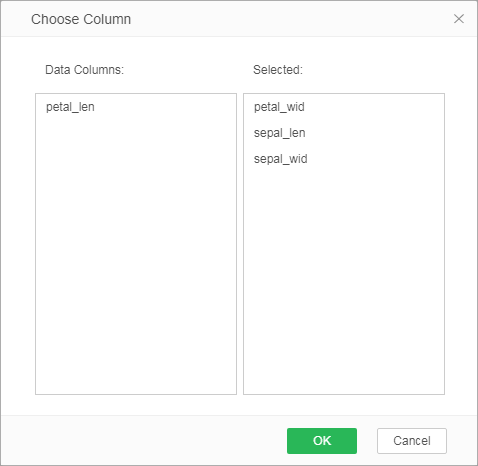 [Choose Correlated Columns] Click the selection button to open the selected column dialog box. Drag the column from the left to the right to add association column.