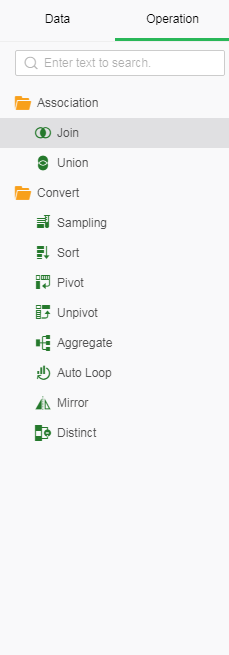 1)Switch the left data list to the operation list.