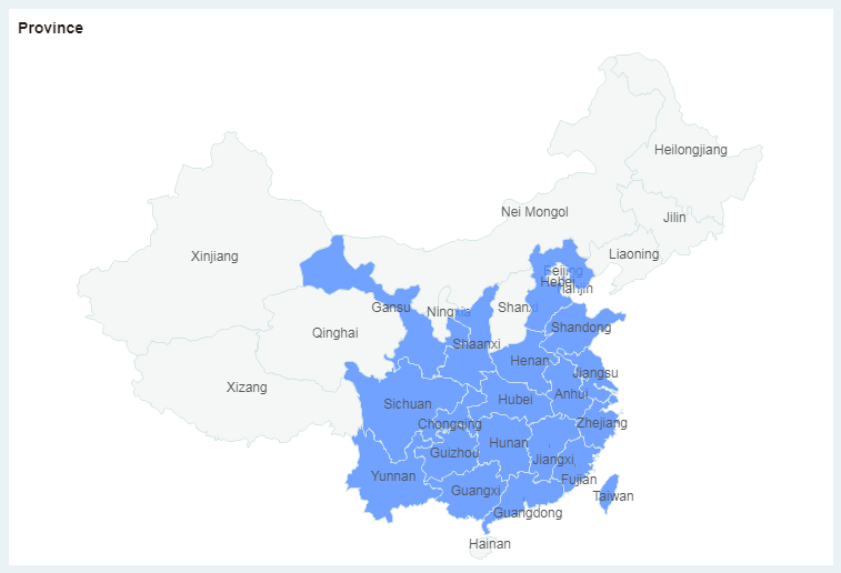 1)In the Map Column dialog box, select "China" for geographic information and "Province" to display data.