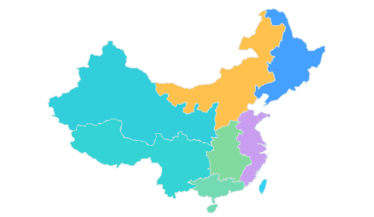 After matching the data, you can draw a map of China divided into regions, as shown in the figure:
