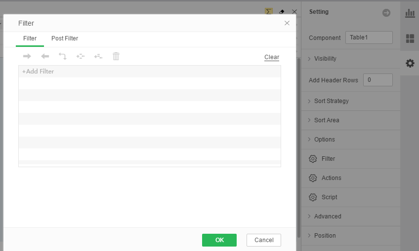 Users can use filters to filter the data. Filtering data can be implemented on components that display data. You need to bind data before you can set filters. Filters that you set can be copied to the same components.