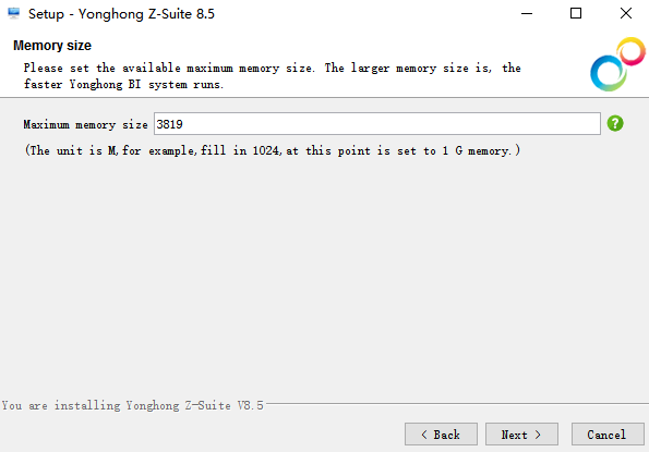 9.Double click YonghongBI. to set the system memory. The default value is related to the installation environment.
