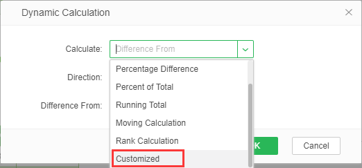 In the Open Dynamic Calculator dialog, select Custom as shown in the following figure.