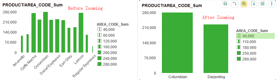 Zooming of chart will lead to interaction of other components (tables, pivots, freestyle tables, charts, gauges, texts) bonded to the same data source.