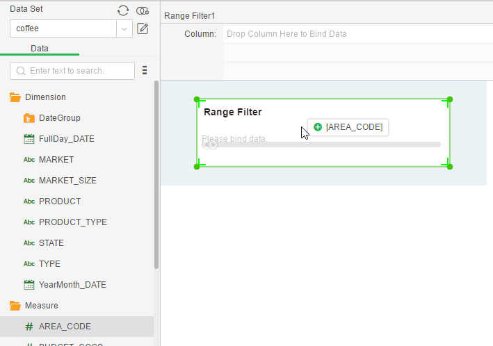 •Drag the data segment to the Range Filter to achieve binding. as the picture shows: