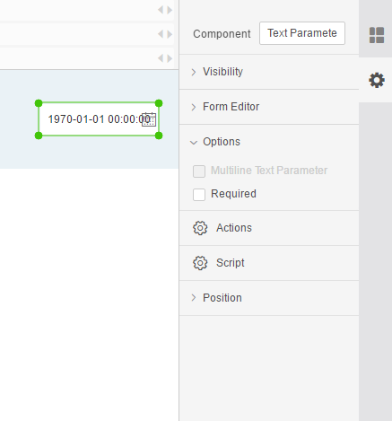 Select the Text Parameter component and click Settings on the right panel. Expand the property settings page: