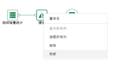 1)普通 sql 数据集:咖啡销售统计,后面连接镜像节点,再连上数据集结果节点。