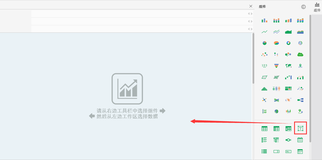 在右侧面板中,拖动文本组件到报表区域,进行创建。如图所示: