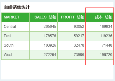 如下表所示,其中的市场销售数据段是通过新建维度表达式实现的。