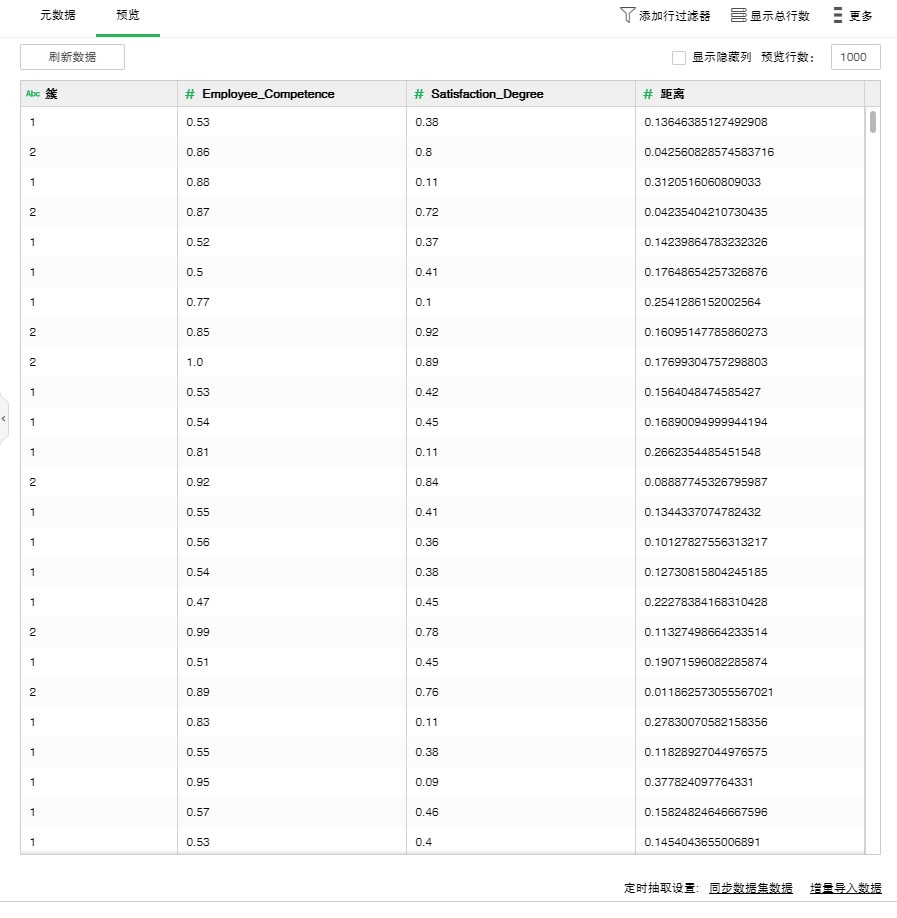 例如,K-Means聚类节点保存为数据集后,元数据如下:
