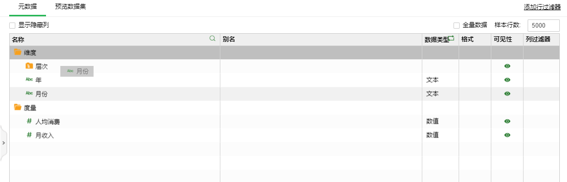 某一 SQL 数据集中存在年、季度、月份字段,三个字段之间有范围大小的概念,年大于季度,季度大于月份,如下图所示。