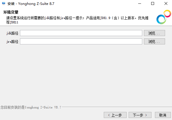 8.设置系统所需要的jdk路径和jre路径。提示:产品适用JDK1.9(含)以上的版本,优先推介JDK11