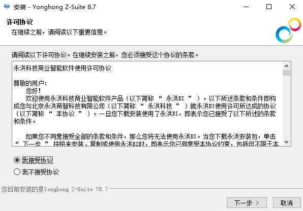 3.选择确定后,进入 Yonghong 安装程序向导,用户可以选择升级已有的安装或者安装至新的目录。