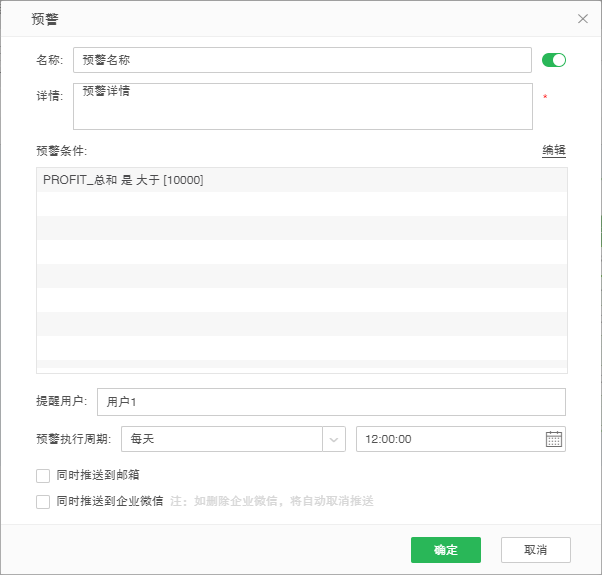 同时推送到邮箱:勾选后预警触发时会发送邮件到提醒用户的邮箱;