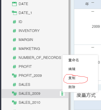 1.新建“SALES”的过滤列,过滤条件是“年 是 = 2009”。