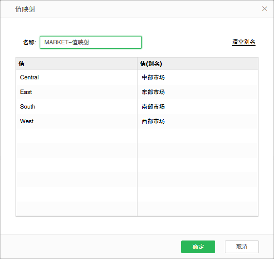 【值 ( 别名 )】双击输入框后可编辑,能够对字段的值设置别名。