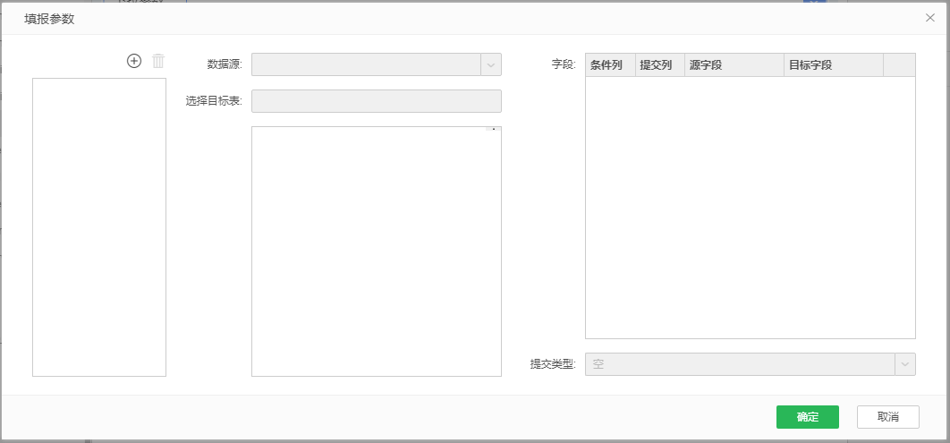 【字段】通过源字段和目标字段的匹配使报表中的组件和要提交到数据库的表的字段对应起来。