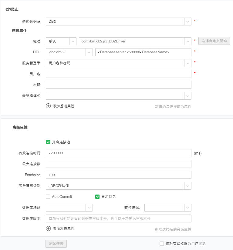 1. 在添加数据源首页点击 DB2 数据库,进入新建页面。