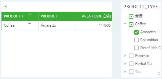 树状过滤1绑定了PRODUCT_TYPE、PRODUCT两个字段。