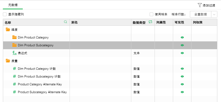 刷新元数据后,点击添加过滤按钮,打开行过滤对话框。
