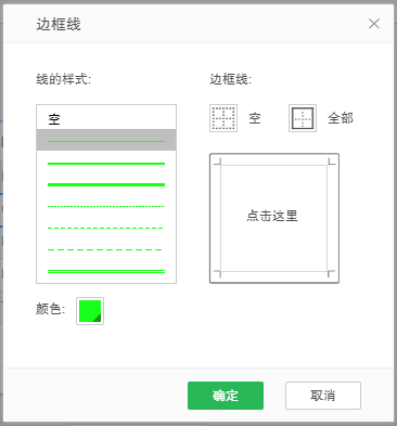 【边框线】点击 “ 空 ” 即不设置边框线;点击 “ 全部 ” 即设置上下左右边框线。