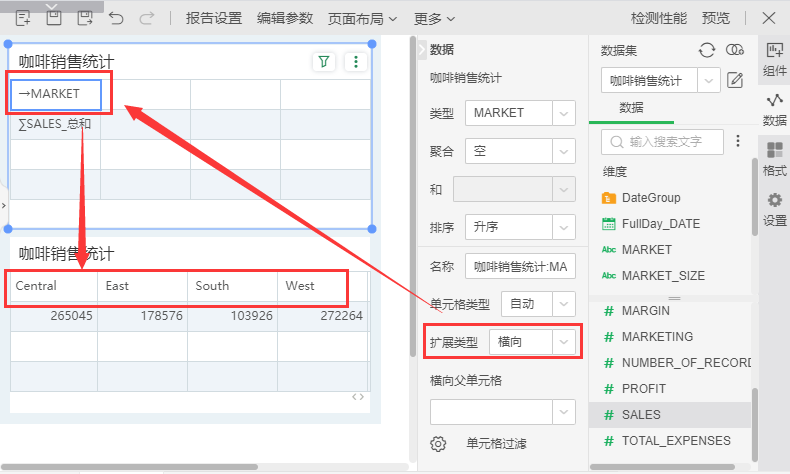 选择了横向的扩展类型后,点击仪表盘的空白区域退出表格的元数据模式或者预览,如下图为横向扩展: