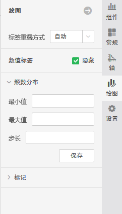 列轴为系统根据度量数据的最大最小值计算出的分布区间,这个区间可以在右侧pane设置,可以设置的有最大值最小值和步长值,设置好之后需要点击保存。
