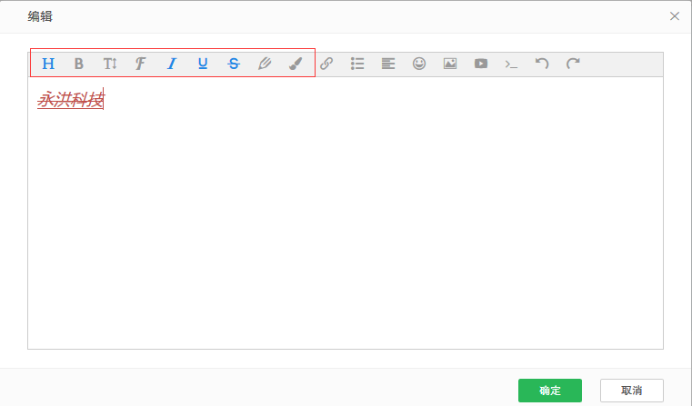 在dialog中可以直接输入文本内容,通过上方工具栏的按钮设置文本的颜色字号等信息: